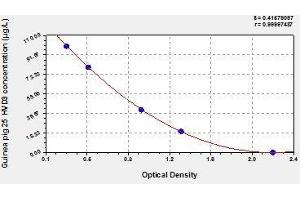 Create a standard curve by reducing the data using computer software capable of generating a four parameter logistic (4-PL) curve fit. As an alternative, construct a standard curve by plotting the mean absorbance for each standard on the x-axis against the concentration on the y-axis and draw a best fit curve through the points on the graph. The data may be linearized by plotting the log of the target antigen concentration versus the log of the O.D. and the best fit line can be determined by regression analysis. This procedure will produce an adequate but less precise fit of the data.