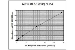 - This high sensitive ELISA (enzyme-linked immunosorbent assay) kit is produced for the exclusively quantitative determination of bioactive glucagon-like peptide-1 (7-36) [GLP-1 (7-36)] level in plasma samples. The primary amino acid sequence of GLP-1 peptide is identical among mammalian species, i.e. rat, mouse, pig, human, etc. This kit is for research purposes only.