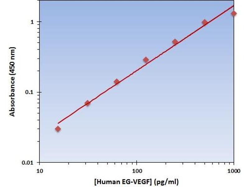 - The Human EG-VEGF ELISA Kit allows for the detection and quantification of endogenous levels of natural and/or recombinant Human EG-VEGF proteins within the range of 16-1000 pg/mL.