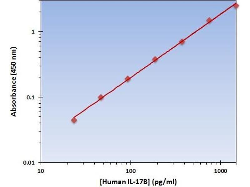 - The Human IL-17B ELISA Kit allows for the detection and quantification of endogenous levels of natural and/or recombinant Human IL-17B proteins within the range of 24-1500 pg/mL.
