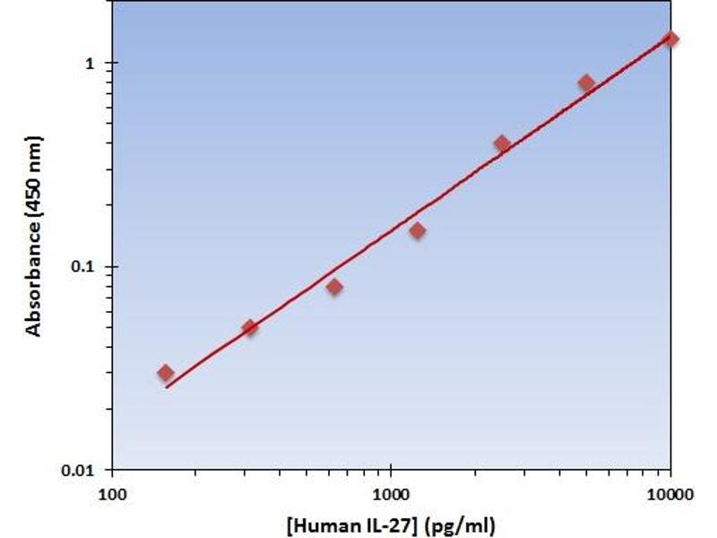 - The Human IL-27 ELISA Kit allows for the detection and quantification of endogenous levels of natural and/or recombinant Human IL-27 proteins within the range of 157-10000 pg/mL.
