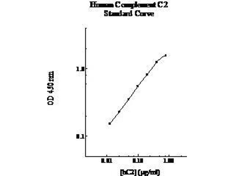 - Complement component C2 (C2) is a multi-domain serum protease that has 732 amino acids with 100 kDa. It provides catalytic activity for the C3 and C5 convertases of the complement pathways and plays an important host defense role against microbial infection. Activated complement C1 cleaves C2 into C2a and C2b fragments. The C-terminal 70 kDa fragment C2a consisting of a serine protease (SP) and a von Willebrand factor type A (vWFA) domain. The smaller 30 kDa N-terminal fragment C2b contains 3 complement control protein (CCP) modules. Polymorphism in C2 is associated with progression to advanced age- related macular degeneration with visual loss. Deficiency of C2 is linked with recurrent serious infections and systemic lupus erythematosus.