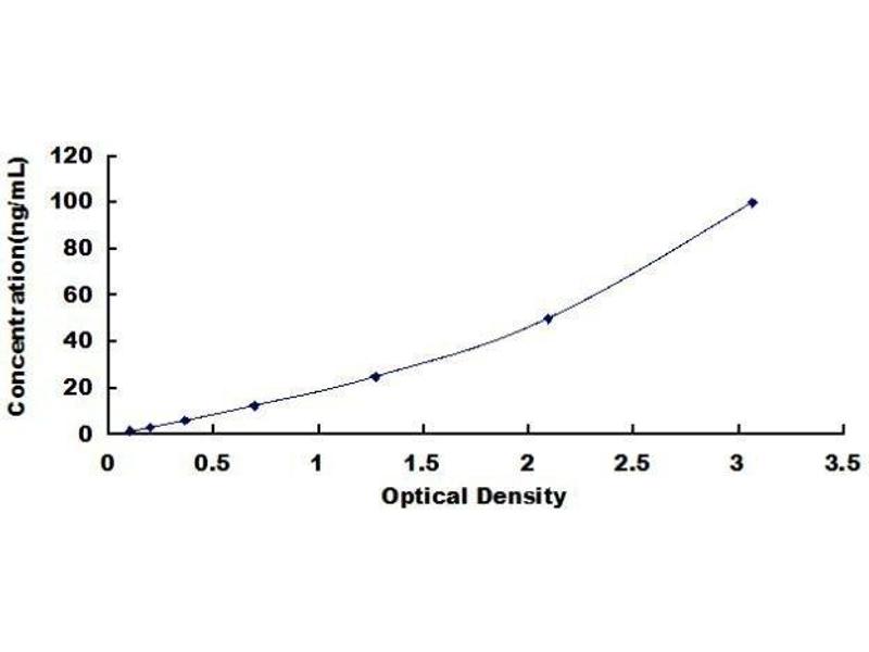 The microtiter plate provided in this kit has been pre-coated with an antibody specific to the index. Standards or samples are then added to the appropriate microtiter plate wells with a biotin-conjugated antibody preparation specific to the index. Next, Avidin conjugated to Horseradish Peroxidase (HRP) is added to each microplate well and incubated. After TMB substrate solution is added, only those wells that contain the index, biotin-conjugated antibody and enzyme-conjugated Avidin will exhibit a change in color. The enzyme-substrate reaction is terminated by the addition of sulphuric acid solution and the color change is measured spectrophotometrically at a wavelength of 450nm ± 10nm. The concentration of the index in the samples is then determined by comparing the O.D. of the samples to the standard curve.