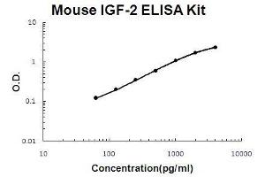 - mouse IGF-2 ELISA Kit was based on standard sandwich enzyme-linked immune-sorbent assay technology. A monoclonal antibody from rat specific for IGF-2 has been precoated onto 96-well plates. Standards(E.coli, A25-E91) and test samples are added to the wells, a biotinylated detection polyclonal antibody from goat specific for IGF-2 is added subsequently and then followed by washing with PBS or TBS buffer. Avidin-Biotin-Peroxidase Complex was added and unbound conjugates were washed away with PBS or TBS buffer. HRP substrate TMB was used to visualize HRP enzymatic reaction. TMB was catalyzed by HRP to produce a blue color product that changed into yellow after adding acidic stop solution. The density of yellow is proportional to the mouse IGF-2 amount of sample captured in plate.