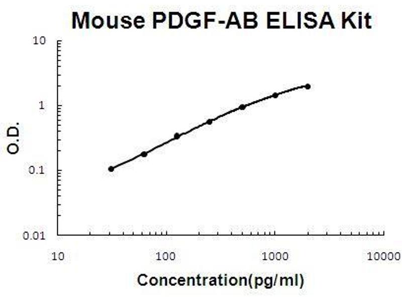 - mouse PDGF-AB ELISA Kit was based on standard sandwich enzyme-linked immune-sorbent assay technology. A monoclonal antibody from rat specific for PDGF-AB has been precoated onto 96-well plates. Standards(E.coli, (S87-T211)+(S82-T190)) and test samples are added to the wells, a biotinylated detection polyclonal antibody from goat specific for PDGF-AB is added subsequently and then followed by washing with PBS or TBS buffer. Avidin-Biotin-Peroxidase Complex was added and unbound conjugates were washed away with PBS or TBS buffer. HRP substrate TMB was used to visualize HRP enzymatic reaction. TMB was catalyzed by HRP to produce a blue color product that changed into yellow after adding acidic stop solution. The density of yellow is proportional to the mouse PDGF-AB amount of sample captured in plate.