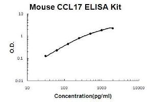 - mouse CCL17 ELISA Kit is based on standard sandwich enzyme-linked immune-sorbent assay technology. A monoclonal antibody from rat specific for CCL17 has been precoated onto 96-well plates. Standards(E.coli, A24-P93) and test samples are added to the wells, a biotinylated detection polyclonal antibody from goat specific for CCL17 is added subsequently and then followed by washing with PBS or TBS buffer. Avidin-Biotin-Peroxidase Complex is added and unbound conjugates are washed away with PBS or TBS buffer. HRP substrate TMB are used to visualize HRP enzymatic reaction. TMB is catalyzed by HRP to produce a blue color product that changed into yellow after adding acidic stop solution. The density of yellow is proportional to the mouse CCL17 amount of sample captured in plate.