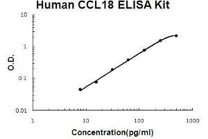 - human CCL18 ELISA Kit is based on standard sandwich enzyme-linked immune-sorbent assay technology. A monoclonal antibody from mouse specific for CCL18 has been precoated onto 96-well plates. Standards(E.coli, A21-A89) and test samples are added to the wells, a biotinylated detection polyclonal antibody from goat specific for CCL18 is added subsequently and then followed by washing with PBS or TBS buffer. Avidin-Biotin-Peroxidase Complex is added and unbound conjugates are washed away with PBS or TBS buffer. HRP substrate TMB are used to visualize HRP enzymatic reaction. TMB is catalyzed by HRP to produce a blue color product that changed into yellow after adding acidic stop solution. The density of yellow is proportional to the human CCL18 amount of sample captured in plate.