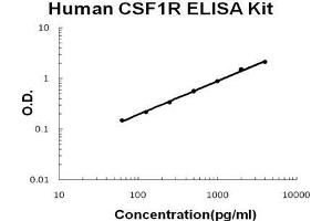 - human CSF1R ELISA Kit was based on standard sandwich enzyme-linked immune-sorbent assay technology. A monoclonal antibody from mouse specific for CSF1R has been precoated onto 96-well plates. Standards(NSO, I20-E512) and test samples are added to the wells, a biotinylated detection polyclonal antibody from goat specific for CSF1R is added subsequently and then followed by washing with PBS or TBS buffer. Avidin-Biotin-Peroxidase Complex was added and unbound conjugates were washed away with PBS or TBS buffer. HRP substrate TMB was used to visualize HRP enzymatic reaction. TMB was catalyzed by HRP to produce a blue color product that changed into yellow after adding acidic stop solution. The density of yellow is proportional to the human CSF1R amount of sample captured in plate.