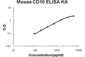 - mouse CD10 ELISA Kit was based on standard sandwich enzyme-linked immune-sorbent assay technology. A monoclonal antibody from rat specific for CD10 has been precoated onto 96-well plates. Standards(sf21,Y52-W750) and test samples are added to the wells, a biotinylated detection polyclonal antibody from goat specific for CD10 is added subsequently and then followed by washing with PBS or TBS buffer. Avidin-Biotin-Peroxidase Complex was added and unbound conjugates were washed away with PBS or TBS buffer. HRP substrate TMB was used to visualize HRP enzymatic reaction. TMB was catalyzed by HRP to produce a blue color product that changed into yellow after adding acidic stop solution. The density of yellow is proportional to the mouse CD10 amount of sample captured in plate.