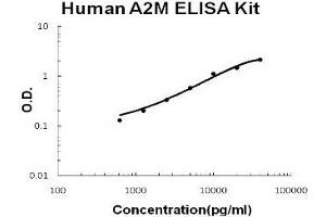 - human A2M ELISA Kit was based on standard sandwich enzyme-linked immune-sorbent assay technology. A monoclonal antibody from mouse specific for A2M has been precoated onto 96-well plates. Standards(from human plasma) and test samples are added to the wells, a biotinylated detection polyclonal antibody from goat specific for A2M is added subsequently and then followed by washing with PBS or TBS buffer. Avidin-Biotin-Peroxidase Complex was added and unbound conjugates were washed away with PBS or TBS buffer. HRP substrate TMB was used to visualize HRP enzymatic reaction. TMB was catalyzed by HRP to produce a blue color product that changed into yellow after adding acidic stop solution. The density of yellow is proportional to the human A2M amount of sample captured in plate.