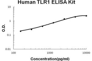 - human TLR1 ELISA Kit was based on standard sandwich enzyme-linked immune-sorbent assay technology. A monoclonal antibody from mouse specific for TLR1 has been precoated onto 96-well plates. Standards(NSO, S22-N578) and test samples are added to the wells, a biotinylated detection polyclonal antibody from goat specific for TLR1 is added subsequently and then followed by washing with PBS or TBS buffer. Avidin-Biotin-Peroxidase Complex was added and unbound conjugates were washed away with PBS or TBS buffer. HRP substrate TMB was used to visualize HRP enzymatic reaction. TMB was catalyzed by HRP to produce a blue color product that changed into yellow after adding acidic stop solution. The density of yellow is proportional to the human TLR1 amount of sample captured in plate.