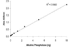 - This SensoLyte® kit can be used to detect alkaline phosphatase activity in biological samples and alkaline phosphatase-based ELISA. The kit contains: pNPP chromogenic liquid substrate (absorption maximum = 405 nm upon dephosphorylation), Assay buffer, Stop solution, Alkaline phosphatase standard,
