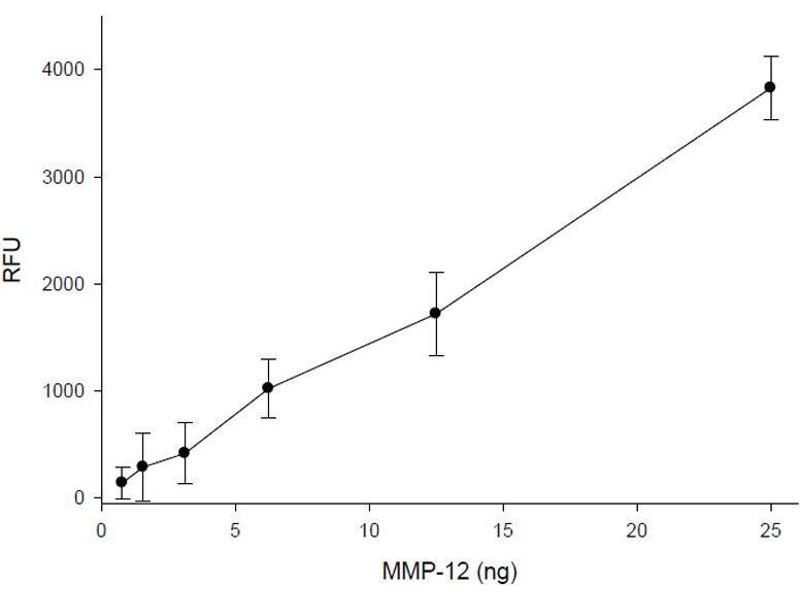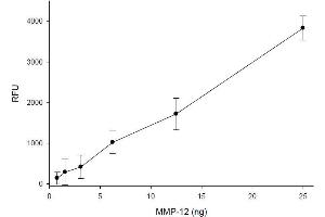 - SensoLyte® 520 MMP-12 Assay Kit uses a 5-FAM (fluorophore) and QXL520™ (quencher) labeled FRET peptide substrates for continuous measurement of the enzyme activities. This substrate showed excellent specificity to MMP-12 with minimal cross-reaction with MMP-1, 2, 7, 8, 9, 9, 13 and 14. In an intact FRET peptide, the fluorescence of 5-FAM is quenched by QXL520™. Upon the cleavage of the FRET peptide by MMP-12, the fluorescence of 5-FAM is recovered, and can be continuously monitored at excitation/emission = 490 nm/520 nm. With superior fluorescence quantum yield and longer emission wavelength, 5-FAM/QXL520™ based FRET peptide is less interfered by the autofluorescence of test compounds and cellular components and provides better assay sensitivity.