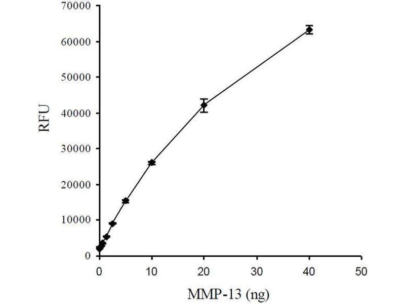 - SensoLyte® 520 MMP-13 Assay Kit uses a 5-FAM (fluorophore) and QXL™ 520 (quencher) labeled FRET peptide substrates for continuous measurement of the enzyme activities. In an intact FRET peptide, the fluorescence of 5-FAM is quenched by QXL™ 520. Upon the cleavage of the FRET peptide by MMP-13, the fluorescence of 5-FAM is recovered, and can be continuously monitored at excitation/emission = 490 nm/520 nm. With superior fluorescence quantum yield and longer emission wavelength, 5-FAM/QXL™ 520 based FRET peptide is less interfered by the autofluorescence of test compounds and cellular components and provides better assay sensitivity.