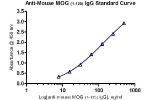 - The SensoLyte® Anti-Mouse MOG (1-125) IgG Quantitative ELISA Kit provides a convenient quantitative assay for anti-mouse MOG (1-125) autoantibody. This colorimetric assay is useful to researchers for determining the amount of anti-mouse MOG (1-125) antibody present, and can help provide information on the role it plays in the development and treatment of EAE, an animal model for multiple sclerosis pathogenesis.