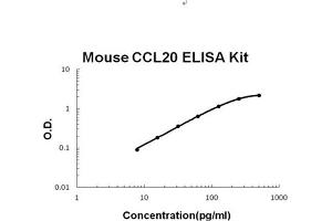 - mouse CCL20 ELISA Kit was based on standard sandwich enzyme-linked immune-sorbent assay technology. A monoclonal antibody from rat specific for CCL20 has been precoated onto 96-well plates. Standards(E.coli, A28-M97) and test samples are added to the wells, a biotinylated detection polyclonal antibody from goat specific for CCL20 is added subsequently and then followed by washing with PBS or TBS buffer. Avidin-Biotin-Peroxidase Complex was added and unbound conjugates were washed away with PBS or TBS buffer. HRP substrate TMB was used to visualize HRP enzymatic reaction. TMB was catalyzed by HRP to produce a blue color product that changed into yellow after adding acidic stop solution. The density of yellow is proportional to the mouse CCL20 amount of sample captured in plate.