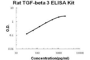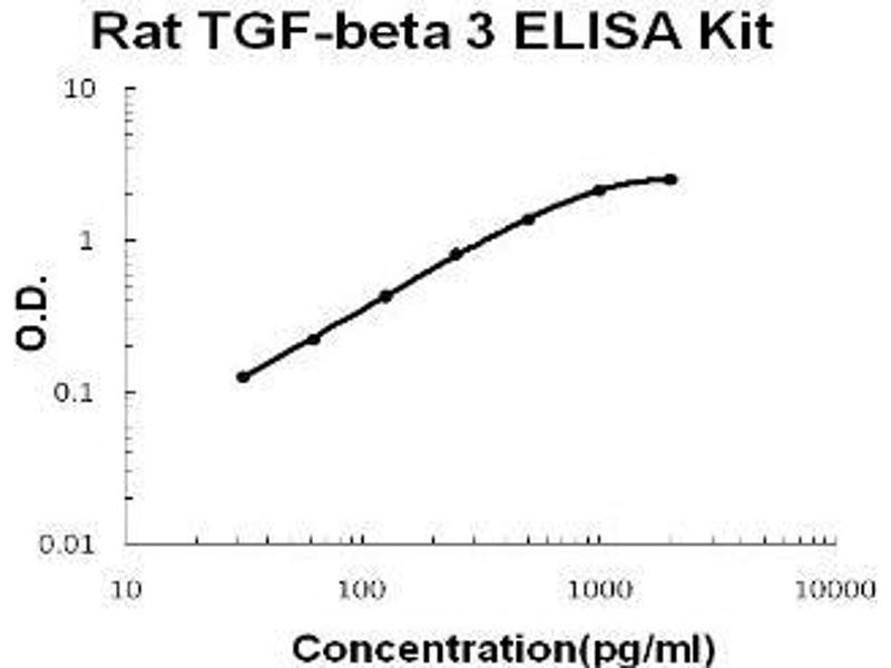 - rat TGF-beta 3 ELISA Kit was based on standard sandwich enzyme-linked immune-sorbent assay technology. A monoclonal antibody from mouse specific for TGF-beta 3 has been precoated onto 96-well plates. Standards(sf21, A301-S412) and test samples are added to the wells, a biotinylated detection polyclonal antibody from goat specific for TGF-beta 3 is added subsequently and then followed by washing with PBS or TBS buffer. Avidin-Biotin-Peroxidase Complex was added and unbound conjugates were washed away with PBS or TBS buffer. HRP substrate TMB was used to visualize HRP enzymatic reaction. TMB was catalyzed by HRP to produce a blue color product that changed into yellow after adding acidic stop solution. The density of yellow is proportional to the rat TGF-beta 3 amount of sample captured in plate.