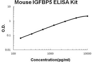 - mouse IGFBP5 ELISA Kit was based on standard sandwich enzyme-linked immune-sorbent assay technology. A monoclonal antibody from rat specific for IGFBP5 has been precoated onto 96-well plates. Standards(NSO, L20-E271) and test samples are added to the wells, a biotinylated detection polyclonal antibody from goat specific for IGFBP5 is added subsequently and then followed by washing with PBS or TBS buffer. Avidin-Biotin-Peroxidase Complex was added and unbound conjugates were washed away with PBS or TBS buffer. HRP substrate TMB was used to visualize HRP enzymatic reaction. TMB was catalyzed by HRP to produce a blue color product that changed into yellow after adding acidic stop solution. The density of yellow is proportional to the mouse IGFBP5 amount of sample captured in plate.
