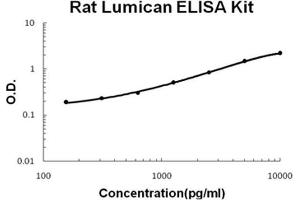 - rat Lumican ELISA Kit was based on standard sandwich enzyme-linked immune-sorbent assay technology. A monoclonal antibody from mouse specific for Lumican has been precoated onto 96-well plates. Standards(NSO, Q19-N338) and test samples are added to the wells, a biotinylated detection polyclonal antibody from goat specific for Lumican is added subsequently and then followed by washing with PBS or TBS buffer. Avidin-Biotin-Peroxidase Complex was added and unbound conjugates were washed away with PBS or TBS buffer. HRP substrate TMB was used to visualize HRP enzymatic reaction. TMB was catalyzed by HRP to produce a blue color product that changed into yellow after adding acidic stop solution. The density of yellow is proportional to the rat Lumican amount of sample captured in plate.