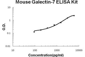 - mouse Galectin-7 ELISA Kit was based on standard sandwich enzyme-linked immune-sorbent assay technology. A monoclonal antibody from rat specific for Galectin-7 has been precoated onto 96-well plates. Standards(E.coli, S2-F136) and test samples are added to the wells, a biotinylated detection polyclonal antibody from goat specific for Galectin-7 is added subsequently and then followed by washing with PBS or TBS buffer. Avidin-Biotin-Peroxidase Complex was added and unbound conjugates were washed away with PBS or TBS buffer. HRP substrate TMB was used to visualize HRP enzymatic reaction. TMB was catalyzed by HRP to produce a blue color product that changed into yellow after adding acidic stop solution. The density of yellow is proportional to the mouse Galectin-7 amount of sample captured in plate.