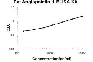 - rat Angiopoietin-1 ELISA Kit was based on standard sandwich enzyme-linked immune-sorbent assay technology. A monoclonal antibody from mouse specific for Angiopoietin-1 has been precoated onto 96-well plates. Standards(NSO, H16-F498) and test samples are added to the wells, a biotinylated detection polyclonal antibody from goat specific for Angiopoietin-1 is added subsequently and then followed by washing with PBS or TBS buffer. Avidin-Biotin-Peroxidase Complex was added and unbound conjugates were washed away with PBS or TBS buffer. HRP substrate TMB was used to visualize HRP enzymatic reaction. TMB was catalyzed by HRP to produce a blue color product that changed into yellow after adding acidic stop solution. The density of yellow is proportional to the rat Angiopoietin-1 amount of sample captured in plate.