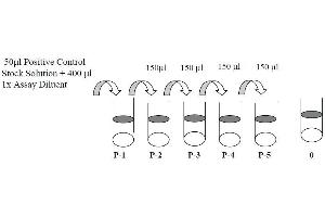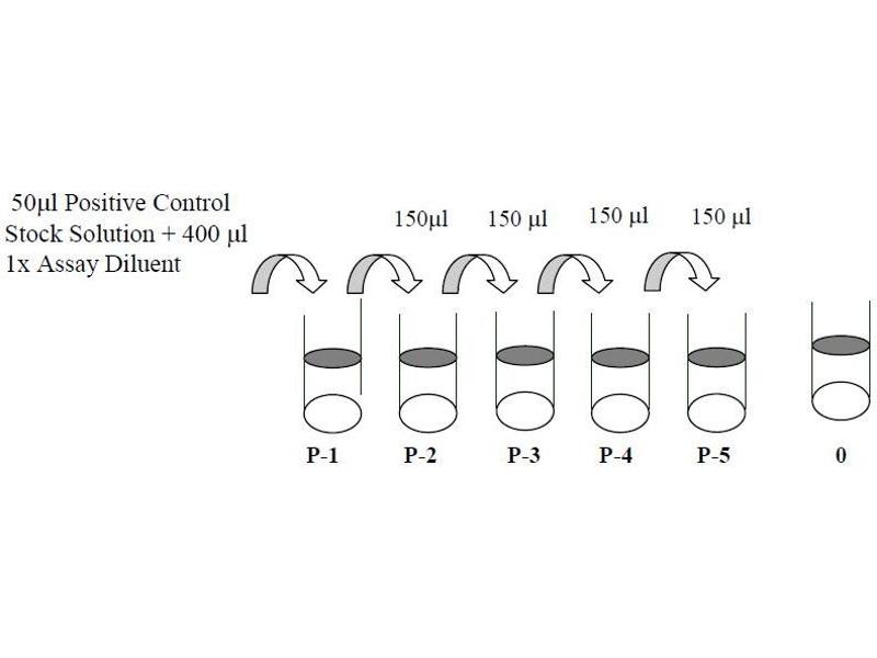 3. Preparation of Positive Control: Briefly spin the Positive Control vial of Item K. Add 250 µL 1x Assay Diluent (Item E, Assay Diluent should be diluted 5-fold with deionized or distilled water before use) into Item K vial to prepare a Positive Control Stock Solution. Dissolve the powder thoroughly by a gentle mix. Add 50 µL prepared Positive Control Stock Solution from the vial of Item K, into a tube with 400 µL 1x Assay Diluent to prepare P-1 (See i. Positive control of part IX. TYPICAL DATA for a typical result). Pipette 300 µL 1x Assay Diluent into each tube. Transfer 150 µL prepared P-1 into a tube with 300 µL 1x Asaay Diluent to produce a dilution series (shown below). Mix each tube thoroughly before the next transfer. 1x Assay Diluent serves as the background. P-1 P-2 P-3 P-4 P-5 0 150 µL 50µl Positive Control Stock Solution 400 µL 1x Assay Diluent 150µl 150 µL 150 µL Phospho-BTK ELISA Kit Protocol 6
