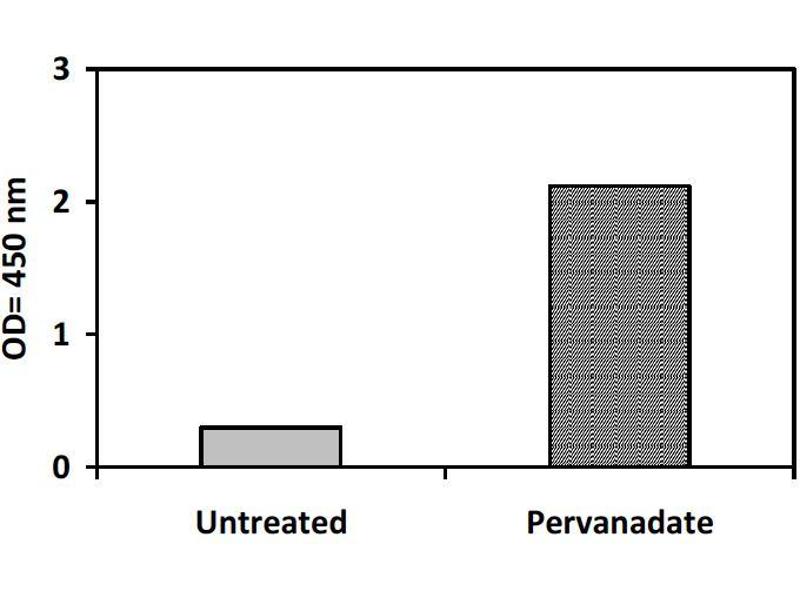 ii. Pervanadate Stimulation of Jurkat Cell Line Jurkat cells were treated or untreated with Pervanadate for 10 min at 37 °C. Cell lysates were analyzed using this phosphoELISA: 0 1 2 3 Untreated Pervanadate OD = 4 50 n m P-1 P-2 P-3 P-4 P-5 Positive control dilution series Assay Diluent Phospho-EphA4 ELISA Kit Protocol 10 X. -