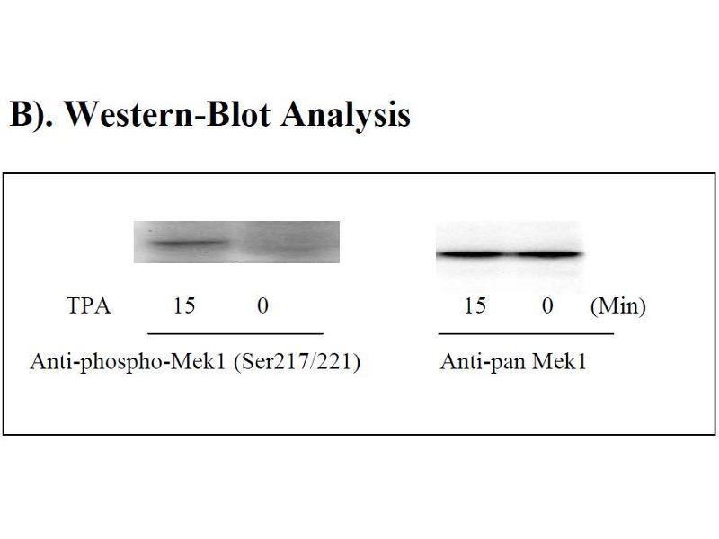 - The antibody pair provided in this kit recognizes human, mouse and rat Phospho-Mek1 (Ser217/221) + pan Mek.