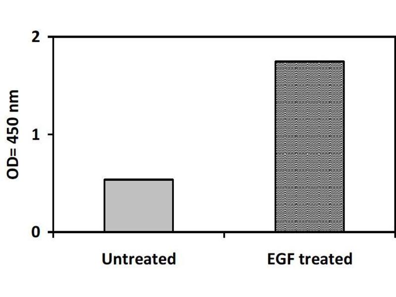 ii. Recombinant Human EGF Stimulation of A431 Cell Lines A431 cells were treated or untreated with 100 ng/mL recombinant human EGF for 10 min. Cell lysates were analyzed using this phosphoELISA: 0 1 2 Untreated EGF treated OD = 4 50 n m Phospho-PYK2 ELISA 11 X -