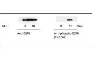 - The antibodies provided in this kit recognizes human EGFR phosphorylated at site Tyrosine-1068 and total EGRF for comparison.