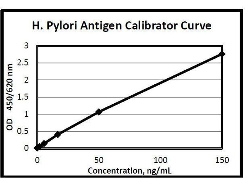 5. H. pylori Antigen Calibrator Level 6. 1 vial containing 1.5 mL of H.pylori Antigen Calibrator Level 6. This calibrator is in a liquid bovine serum albumin-based matrix with mercury and sodium azide preservative. Refer to vials for exact concentration. This reagent should be stored at 2-8 °C and are stable until the expiration date on the kit box, -2 °C for long term storage.