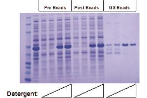 - Determine the optimal detergent amount for solubilizing and renaturing GST inclusion body by running a SDS-PAGE.