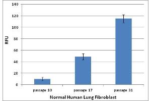 Normal primary cells proliferate in culture for a limited number of population doublings prior to undergoing terminal growth arrest and acquiring a senescent phenotype. This finite life span correlates with the age of the organism and with the life expectancy of the species from which the cells were obtained, such that the older the age or the shorter the life span, the less the ability of the cells to undergo population doubling. Senescent cells are characterized by an irreversible G1 growth arrest involving the repression of genes that drive cell cycle progression and the upregulation of cell cycle INK4a CIP1 inhibitors like p16 , p53, and its transcriptional target, p21 . They are resistant to mitogen- induced proliferation, and assume a characteristic enlarged, flattened morphology. Research into the pathways that positively regulate senescence and ways cells bypass senescence is therefore critical in understanding carcinogenesis. Normal cells have several mechanisms in place to protect against uncontrolled proliferation and tumorigenesis. Senescent cells show common biochemical markers such as expression of an acidic senescence- associated ß-galactosidase (SA-ß-Gal) activity. While senescence has been characterized primarily in cultured cells, there is also evidence that it occurs in vivo. Cells expressing markers of senescence such as SA-ß-Gal have been identified in normal tissues. The 96-well Cellular Senescence Assay Kit provides an easy-to-use and efficient method to determine the cellular senescence by measuring SA-ß-Gal activity using a fluorometric substrate. This quantitative assay uses cell lysate for both SA-β-galactosidase activity determination and normalization of samples containing different cell numbers. Each Trial Size kit provides sufficient quantities to perform up to 24 assays in a 96-well plate.