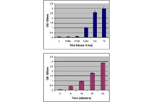 - 96-well ROCK Activity Assay Kit is an enzyme immunoassay developed for detection of the specific phosphorylation of MYPT1 at Thr696 by ROCK. A strip well microtiter plate is precoated with a recombinant MYPT1. After incubating the substrate wells with ROCK samples (such as purified kinase, cell or tissue lysate) the phosphorylated MYPT1 is detected by an anti-phospho- MYPT1 (Thr696) antibody (Figure 1). 96-well ROCK Activity Assay Kit provides a non-isotopic, sensitive and specific method to monitor ROCK activity using its physiological substrate, it can also be used in screening ROCK inhibitors. The kit has detection sensitivity limit of 200 pg of active ROCK-II. A recombinant active ROCK-II is also provided as a positive control. Each kit provides sufficient quantities to perform up to 96 assays. Related Products 1. STA-415: ROCK Activity Immunoblot Kit 2. STA-400: Ras Activation Assay Kit 3. STA-402: Cdc42 Activation Assay Kit 4. STA-403: Rho Activation Assay Kit 5. STA-404: Rac/Cdc42 Activation Assay Combo Kit 6. STA-405: Rho/Rac/Cdc42 Activation Assay Combo Kit 7. STA-410: PAK1 PBD Agarose Beads 8. STA-411: Raf1 PBD Agarose Beads 9. STA-412: Rhotekin PBD Agarose Beads 10. STA-452: GFP-RhoA Expression Vector Set 11. STA-456: RhoA Expression Vector Set 12. STA-460: Exoenzyme C3 (Rho Inhibitor) Expression Vector 2