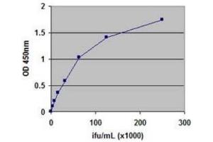 - A particular challenge in the delivery of a gene by a viral vector is the accurate measurement of virus titer. Traditionally, infectivity particles are measured in culture by a plaque-forming unit assay (PFU) that scores the number of viral plaques as a function of dilution. These methods are time-consuming (10 days), require a long infection period, and suffer from a high degree of inter-assay variability and are affected by virus-cell interactions. QuickTiter™ Adenovirus Titer ELISA Kit utilizes an antibody against adenovirus hexon proteins to quantitate infected cells. The hexon proteins are the largest and most abundant of the structural proteins in the adenovirus capsid, and they are distributed symmetrically to form capsid facets. QuickTiter™ Adenovirus Titer ELISA Kit provides a quick and complete system to functionally titer virus infectivity, it provides sufficient reagents for up to 192 tests in 96-well plates. In contrast to the 10-day infection of a classical plaque assay, the kit only requires a 2-day infection. Detection sensitivity is 104 ifu/mL (106-107 VP/mL), which is sufficient for most adenoviral samples. The kit recognizes all 41 serotypes of adenovirus by immunocytochemistry and can be used with any adenovirus system as long as the virus is able to amplify in HEK 293 cells.