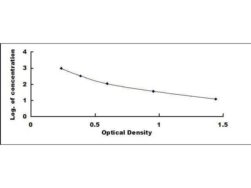 In order to make the calculation easier, we plot the O.D. value of the standard (X-axis) against the log of concentration of the standard (Y-axis), although concentration is indeed the independent variable while O.D. value is the dependent variable. The O.D. values of the standard curve may vary according to the conditions of assay performance (e.g. operator, pipetting technique, washing technique or temperature effects). This curve is provided for demonstration only. The customers should establish their own standard curve for each test conducted. -