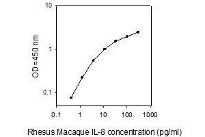- The antibody pair provided in this kit recognizes Rhesus Macaque Interleukin 8 (CXCL8)