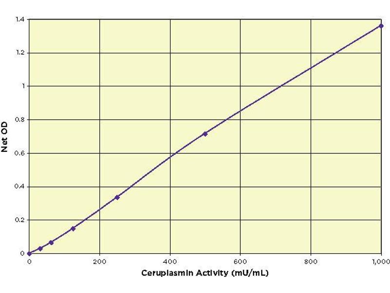 Due to our optimized reagents and incubation times the optical density generated by 1 U/mL of ceruloplasmin is substantially higher than 0.1 OD. -