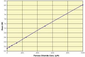 A Ferrous Chloride standard is provided to generate a standard curve for the assay and all samples should be read off of the standard curve.