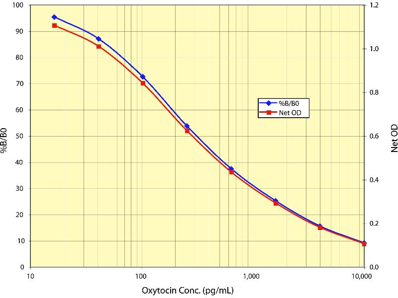 An oxytocin standard is provided to generate a standard curve for the assay and all samples should be read off the standard curve.