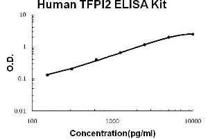 - human TFPI2 ELISA Kit was based on standard sandwich enzyme-linked immune-sorbent assay technology. A monoclonal antibody from mouse specific for TFPI2 has been precoated onto 96-well plates. Standards(NSO, D23-F235) and test samples are added to the wells, a biotinylated detection polyclonal antibody from goat specific for TFPI2 is added subsequently and then followed by washing with PBS or TBS buffer. Avidin-Biotin-Peroxidase Complex was added and unbound conjugates were washed away with PBS or TBS buffer. HRP substrate TMB was used to visualize HRP enzymatic reaction. TMB was catalyzed by HRP to produce a blue color product that changed into yellow after adding acidic stop solution. The density of yellow is proportional to the human TFPI2 amount of sample captured in plate.