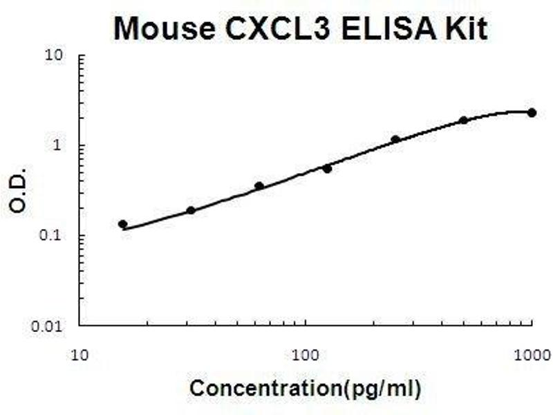 mouse CXCL3 ELISA Kit was based on standard sandwich enzyme-linked immune-sorbent assay technology. A monoclonal antibody from rat specific for CXCL3 has been precoated onto 96-well plates. Standards(E.coli, S32-S100) and test samples are added to the wells, a biotinylated detection polyclonal antibody from goat specific for CXCL3 is added subsequently and then followed by washing with PBS or TBS buffer. Avidin-Biotin-Peroxidase Complex was added and unbound conjugates were washed away with PBS or TBS buffer. HRP substrate TMB was used to visualize HRP enzymatic reaction. TMB was catalyzed by HRP to produce a blue color product that changed into yellow after adding acidic stop solution. The density of yellow is proportional to the mouse CXCL3 amount of sample captured in plate.