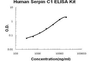 - human Serpin C1 ELISA Kit was based on standard sandwich enzyme-linked immune-sorbent assay technology. A monoclonal antibody from mouse specific for Serpin C1 has been precoated onto 96-well plates. Standards (NSO, H33-K464) and test samples are added to the wells, a biotinylated detection polyclonal antibody from goat specific for Serpin C1 is added subsequently and then followed by washing with PBS or TBS buffer. Avidin-Biotin-Peroxidase Complex was added and unbound conjugates were washed away with PBS or TBS buffer. HRP substrate TMB was used to visualize HRP enzymatic reaction. TMB was catalyzed by HRP to produce a blue color product that changed into yellow after adding acidic stop solution. The density of yellow is proportional to the human Serpin C1 amount of sample captured in plate.