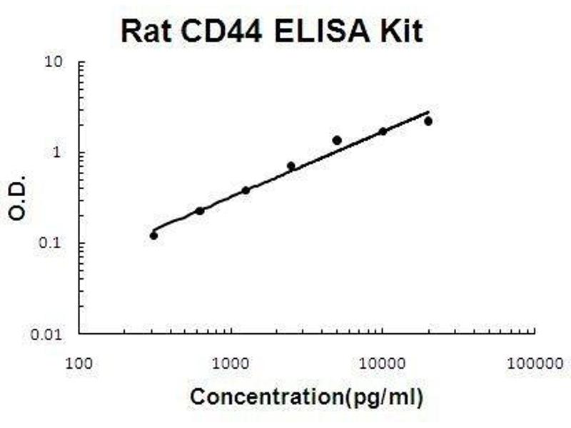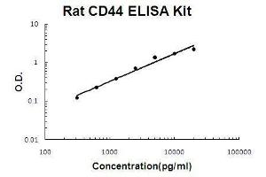 - rat CD44 ELISA Kit was based on standard sandwich enzyme-linked immune-sorbent assay technology. A monoclonal antibody from mouse specific for CD44 has been precoated onto 96-well plates. Standards(NSO, Q22 - E271) and test samples are added to the wells, a biotinylated detection polyclonal antibody from goat specific for CD44 is added subsequently and then followed by washing with PBS or TBS buffer. Avidin-Biotin-Peroxidase Complex was added and unbound conjugates were washed away with PBS or TBS buffer. HRP substrate TMB was used to visualize HRP enzymatic reaction. TMB was catalyzed by HRP to produce a blue color product that changed into yellow after adding acidic stop solution. The density of yellow is proportional to the rat CD44 amount of sample captured in plate.