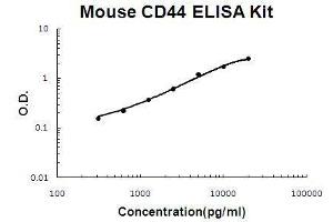 - mouse CD44 ELISA Kit was based on standard sandwich enzyme-linked immune-sorbent assay technology. A monoclonal antibody from rat specific for CD44 has been precoated onto 96-well plates. Standards(CHO, Q25 - T224) and test samples are added to the wells, a biotinylated detection polyclonal antibody from goat specific for CD44 is added subsequently and then followed by washing with PBS or TBS buffer. Avidin-Biotin-Peroxidase Complex was added and unbound conjugates were washed away with PBS or TBS buffer. HRP substrate TMB was used to visualize HRP enzymatic reaction. TMB was catalyzed by HRP to produce a blue color product that changed into yellow after adding acidic stop solution. The density of yellow is proportional to the mouse CD44 amount of sample captured in plate.