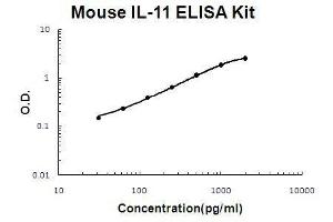 - mouse IL-11 ELISA Kit was based on standard sandwich enzyme-linked immune-sorbent assay technology. A monoclonal antibody from rat specific for IL-11 has been precoated onto 96-well plates. Standards(E.coli, P22-L199) and test samples are added to the wells, a biotinylated detection polyclonal antibody from goat specific for IL-11 is added subsequently and then followed by washing with PBS or TBS buffer. Avidin-Biotin-Peroxidase Complex was added and unbound conjugates were washed away with PBS or TBS buffer. HRP substrate TMB was used to visualize HRP enzymatic reaction. TMB was catalyzed by HRP to produce a blue color product that changed into yellow after adding acidic stop solution. The density of yellow is proportional to the mouse IL-11 amount of sample captured in plate.