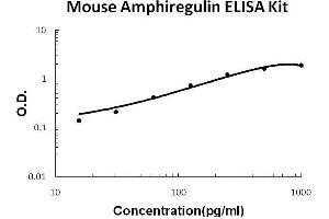 - mouse Amphiregulin ELISA Kit was based on standard sandwich enzyme-linked immune-sorbent assay technology. A monoclonal antibody from rat specific for Amphiregulin has been precoated onto 96-well plates. Standards(E.coli, V100-A248) and test samples are added to the wells, a biotinylated detection polyclonal antibody from goat specific for Amphiregulin is added subsequently and then followed by washing with PBS or TBS buffer. Avidin-Biotin-Peroxidase Complex was added and unbound conjugates were washed away with PBS or TBS buffer. HRP substrate TMB was used to visualize HRP enzymatic reaction. TMB was catalyzed by HRP to produce a blue color product that changed into yellow after adding acidic stop solution. The density of yellow is proportional to the mouse Amphiregulin amount of sample captured in plate.