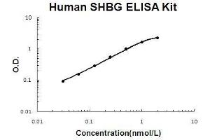 - human SHBG ELISA Kit was based on standard sandwich enzyme-linked immune-sorbent assay technology. A monoclonal antibody from mouse specific for SHBG has been precoated onto 96-well plates. Standards(NSO, L30-H402) and test samples are added to the wells, a biotinylated detection polyclonal antibody from goat specific for SHBG is added subsequently and then followed by washing with PBS or TBS buffer. Avidin-Biotin-Peroxidase Complex was added and unbound conjugates were washed away with PBS or TBS buffer. HRP substrate TMB was used to visualize HRP enzymatic reaction. TMB was catalyzed by HRP to produce a blue color product that changed into yellow after adding acidic stop solution. The density of yellow is proportional to the human SHBG amount of sample captured in plate.