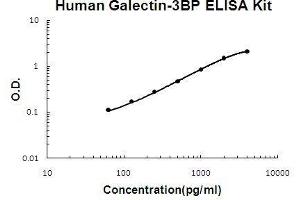 - human Galectin-3BP ELISA Kit was based on standard sandwich enzyme-linked immune-sorbent assay technology. A monoclonal antibody from mouse specific for Galectin-3BP has been precoated onto 96-well plates. Standards(NSO,V19-D585) and test samples are added to the wells, a biotinylated detection polyclonal antibody from goat specific for Galectin-3BP is added subsequently and then followed by washing with PBS or TBS buffer. Avidin-Biotin-Peroxidase Complex was added and unbound conjugates were washed away with PBS or TBS buffer. HRP substrate TMB was used to visualize HRP enzymatic reaction. TMB was catalyzed by HRP to produce a blue color product that changed into yellow after adding acidic stop solution. The density of yellow is proportional to the human Galectin-3BP amount of sample captured in plate.