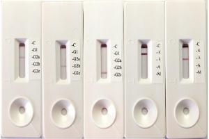 3) A red test line at the location corresponding to antibody-specific isotype and a red control line at ""C' position will appear within 1-5 minutes.